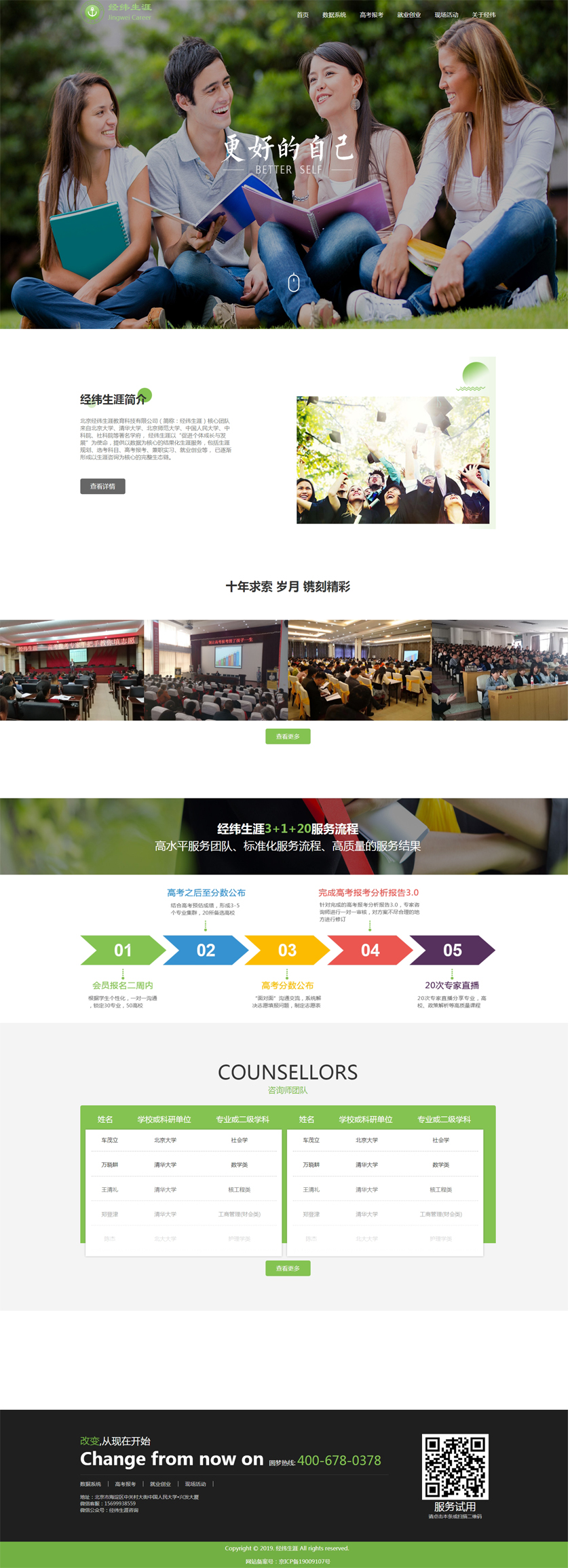 Project Description 北京经纬生涯教育科技有限公司(简称:经纬生涯)核心团队来自北京大学、清华大学、北京师范大学、中国人民大学、中科院、社科院等著名学府, 经纬生涯以“促进个体成长与发展”为使命,提供以数据为核心的结果化生涯服务,包括生涯规划、选考科目、高考报考、兼职实习、就业创业等, 已逐渐形成以生涯咨询为核心的完整生态链。 Official website address 陇南http://www.jingweishengya.com/ I want to share